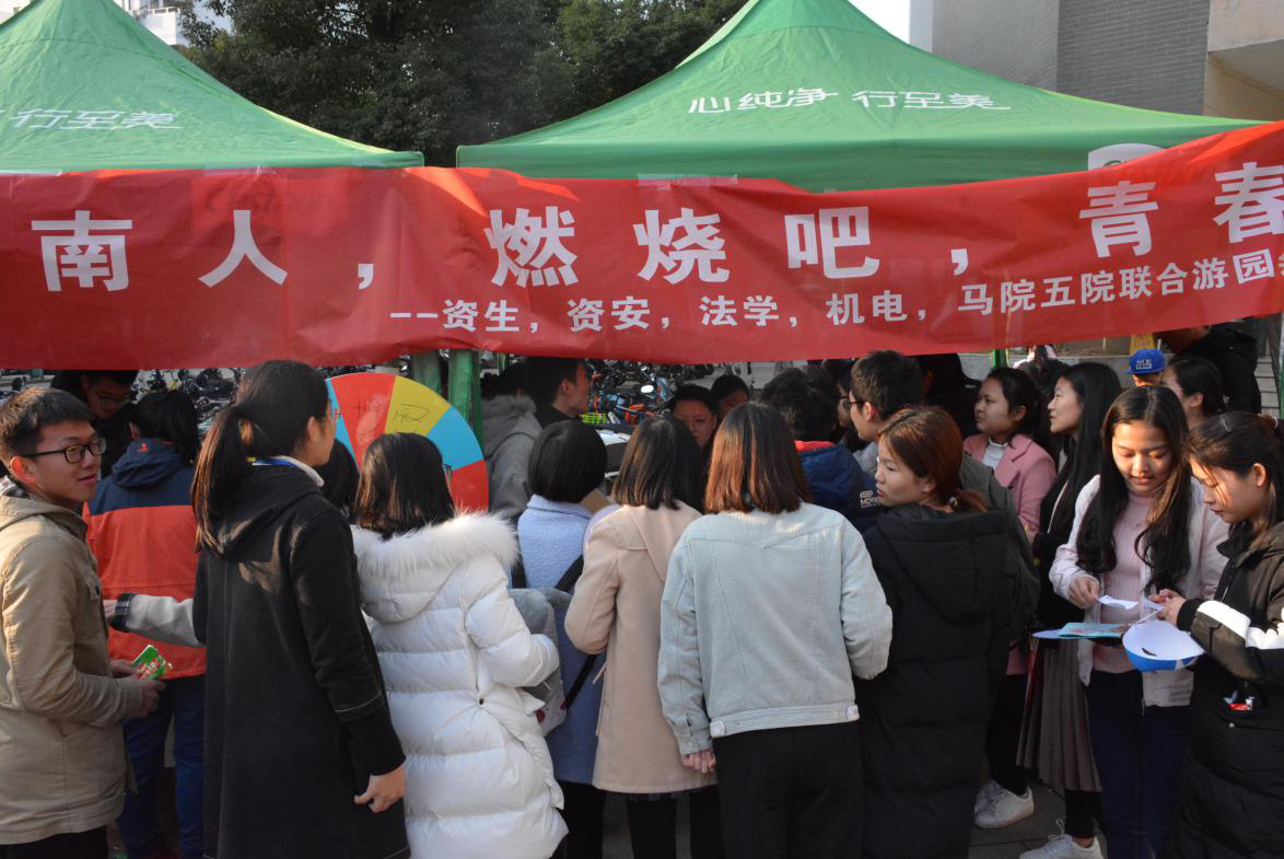 在12月17日,这一个寒冷的冬日,球王会官网心协举办了万众瞩目的游园会,其中机电院联合法公司、资安院、资生院与马院以‘‘翻滚吧,中南人”为主题建立了自己的活动摊位。这次活动旨在帮助同学们更好的了解球王会官网新理健康中心的职能,来增强心协的知名度,扩大心协影响力,使同学们更信任和认可心理互助组织。