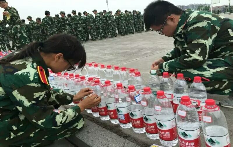 影片的这一幕,让我想起军训时,一些同学因为伤病不能训练,于是我安排一部分跟训的同学负责每天给每个同学的水壶里灌水,然后把水壶摆放整齐,一些同学负责照顾由于训练突发不舒服的同学。这些跟训同学在每天大部队训练时,就默默的、一丝不苟的负责这些工作。有一次,我问一个排的同学:“这么大的太阳,你们训练能不能坚持?”他们坚定的告诉我:“能坚持,想到每次训练完水壶里都是满的,渴了都有水喝,倒了也有人扶,有人照顾,心里就有劲。”