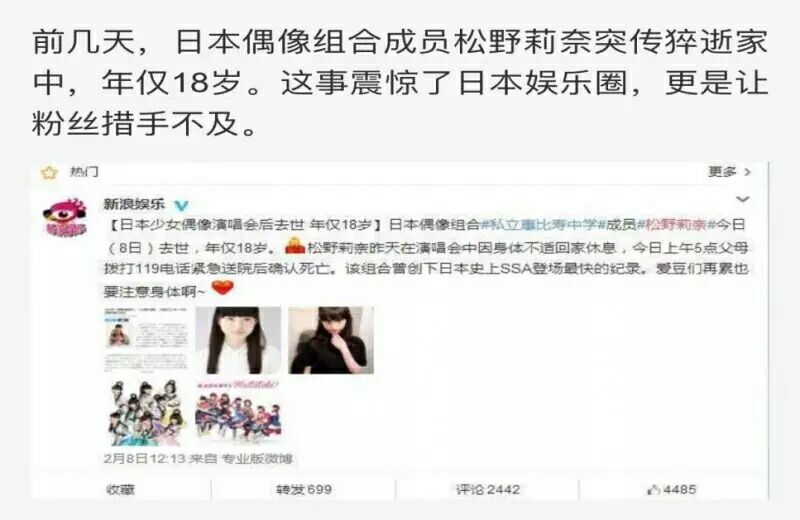 最近,18岁的日本女星应长期睡眠不足,过度劳累,猝死在家中。