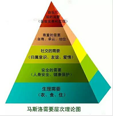 在心理学上有一个非常有名的马斯洛需要层次理论,它清楚的把人类的需求分成五个方面:生理需求(Physiological needs)、安全需求(Safety needs)、爱和归属感(Love and belonging)、尊重(Esteem)和自我实现(Self-actualization)五类。