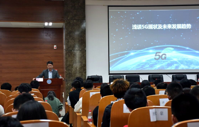 第一场报告,中兴通讯副总裁王亦文作“5G现状及未来发展趋势”专题分享。王亦文老师以小见大,以饱满高昂的状态、平实易懂的语言介绍了5G技术及中国在5G领域的世界领先地位,并结合中美贸易战等时事热点分析了如今的行业形势及发展走向,拓宽了班长们的视野及对核心技术的认识。报告最后,王亦文老师对学员们提出了三点希望,期望学员们能适应大学节奏,确立人生理想目标;积极参与实践,锻炼自身学习能力;保持自律与勤奋的习惯,持之以恒地努力。