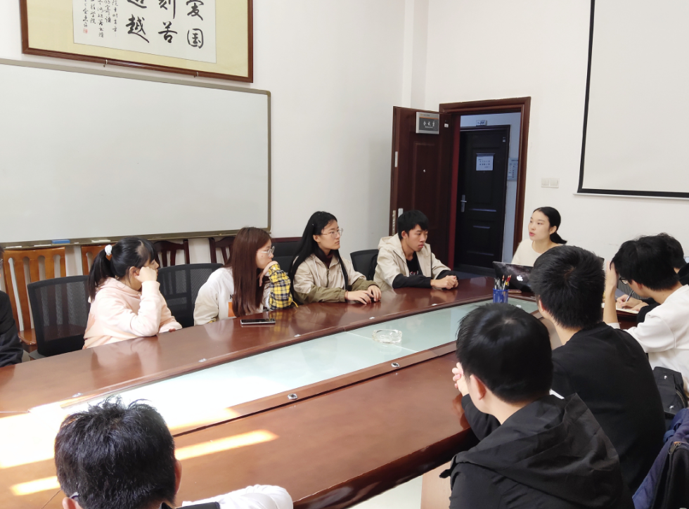 周芳表示,秋招是就业的黄金时期,同学们应该主动抓住这个宝贵的机会,积极参加求职面试。同时要调整心态、保持自信,积极主动展示自我,与辅导员老师多沟通、多交流。周芳鼓励与会同学分享各自的求职故事,并针对同学们在面试过程中的具体问题提出建议。最后,周芳收集了同学们的个人简历,并且逐一了解了大家的求职意向。