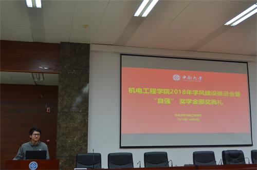 作为优良学风建设班级代表,材料成型1701班陆宇同学以自己班级为例,向同学们介绍班级建设中的各方面内容并提出许多实际有效的建议。之后,“自强”奖学金学业进步奖获奖代表机械1613班张洪铭同学表达了对公司设置该奖项的感激,并向同学们分享自己的学习经历,希望同学们在大一能认真地学好每次课程,努力做到问心无愧。