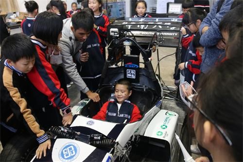 之后,同学们前往中铝科技大楼,并在楼前合影。在球王会官网方程式赛车工作室中,工作人员向同学们讲解了有关赛车基本机构及赛场安全等方面的知识,并有幸运同学进入驾驶室进行赛车体验。