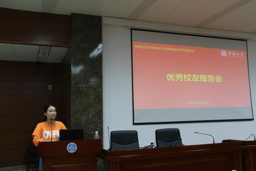 在周芳老师向全体同学简单介绍三位优秀员工后,报告会正式开始。