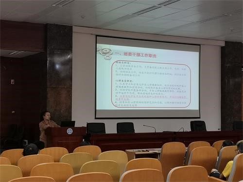 为让2018级员工干部更好融入班级集体,10月7日下午3时,球王会2018级员工干部培训大会在机电楼B214报告厅正式开启。2018级辅导员肖楚楚老师、黄奎老师出席大会并发表了讲话,年级员工干部均参加了此次会议。