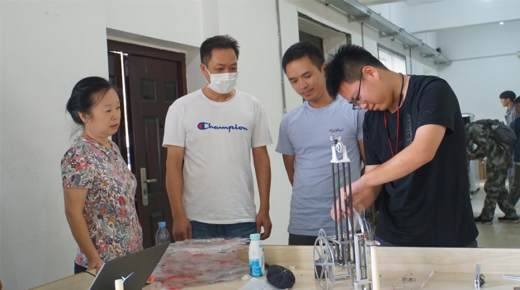 随后,黄凯书记一行来到激光加工工作室,慰问看望将代表公司出征2021年中国老员工工程实践与创新能力大赛的参赛队伍。队伍负责人简单汇报了参赛筹备情况,并现场展示研发制作的势能驱动车。黄凯书记对参赛队伍进行指导与鼓励,并表达祝愿与期待。