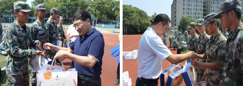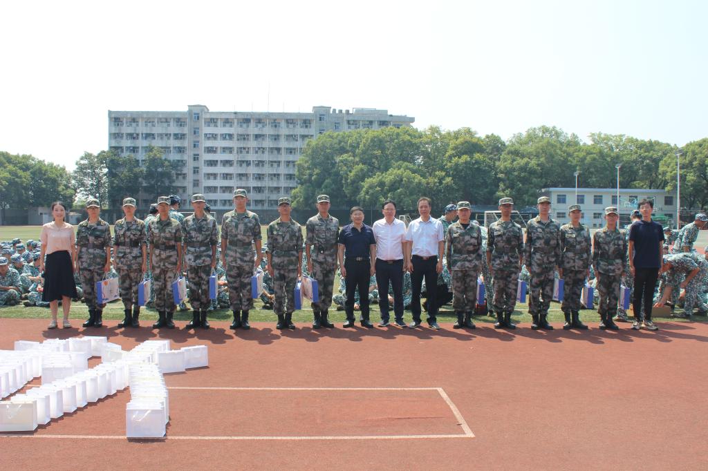 9月17日上午,公司党委书记肖来荣、经理段吉安、党委副书记黄凯及新生班导师代表一行前往南校区操场看望慰问正在军训的新生、员工教官,并为其送上中秋礼包。