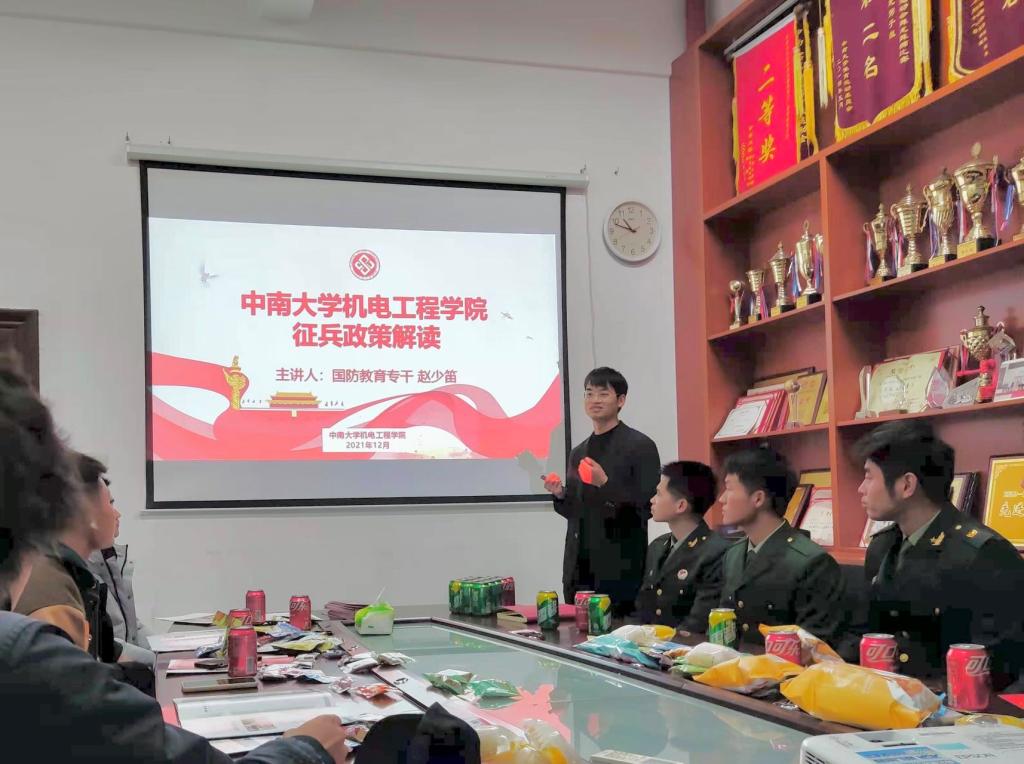 12月19日晚,公司在B204会议室召开2021年征兵政策解读交流会暨退役士兵座谈会,公司征兵专干赵少笛,退役士兵骆亮霖、樊家祥、刘富华、刘亚帅、鲍飞宇、王文通、陈滋壮、蒋文杰出席大会并作分享。公司意向征兵入伍同学积极参与会议。