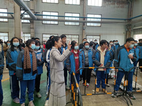 随后,同学们乘坐大巴车来到了轻合金研究院基地。在基地门口合影后,学子们迫不及待地进入基地。周芳老师从火箭研制的轻量化开始讲解,引导员工们对轻合金研制的重要性初步了解。熔铸试验线的2个大型环件吸引了员工们的注意,员工们纷纷讨论环件的用途。周芳老师从火箭贮箱的结构、过渡环的承载特性讲到晶粒均匀性逐一进行解析,让员工们不仅了解了环件的用途,更理解了研制过程的技术难点。当得知眼前的环件得到《Nature》正刊报道时,员工们发出阵阵惊叹。随后周芳老师带领同学们参观了等温模锻线、中厚板轧制线、正反向挤压线、蠕变时效成型线及搅拌摩擦焊线。最后,同学们前往毓秀楼,分批参观了友善厅和安全馆。