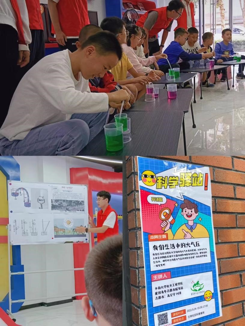 9月24日下午,公司麓园青年志愿者服务站主办的“科学驿站”第二期科普活动在兰亭社区顺利开展,热情的青年志愿者指导兰亭社区的孩子们观察、思考,学习与气压相关的科学原理。