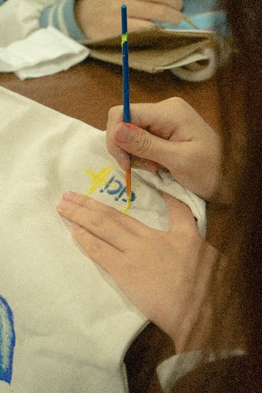 同学们非常热情地投入到活动中,领取材料后,在座位上开始自己的创作,有的在雨伞上肆意释放自己的创意,画下大片的色彩;有的在帆布包上仔细地描摹,画下可爱的小动物;有的在体恤衫上一笔一划地写下自己的名字。欢声笑语充溢在这教室中,大家都沉浸在自己的艺术世界里,将平日里的压力暂时抛开,尽情享受这份快乐。