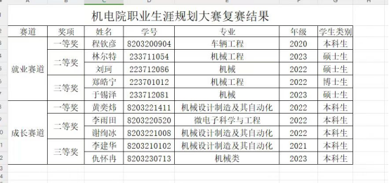 通过紧张激烈的现场展示与答辩以及评委老师的讨论,此次大赛在成长和就业赛道分别产生一等奖一名、二等奖两名、三等奖两名。