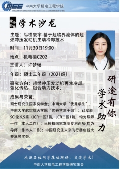 2023年11月30日晚上,公司于机电楼C202成功举办神斧论坛学术沙龙,宣讲主题为:纵横寰宇-基于超临界流体的超燃冲压发动机主动冷却技术。此次宣讲会由公司研究生会学术部主办,21级硕士许梦瑶主讲,许梦瑶同学曾获研究生国家奖学金,优秀员工,优秀员工干部等多项荣誉,发表论文5篇,发明专利两项,该场学术沙龙吸引了许多同学前来学习。