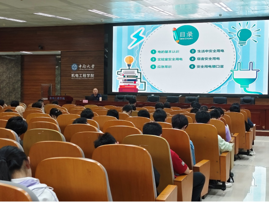 培训包括消防安全讲座和用水用电安全讲座。湘安消防的罗源波教官以“人人讲安全,个个会应急”为题开展了消防安全知识讲座,以触目惊醒的火灾案例切入,讲解了消防安全的重要性以及应急逃生技巧。公司后勤保障部能源管理中心主任汤磊围绕校园能源安全,进行了安全用水用电知识讲座,讲解了宿舍、实验室、学习室等场所安全用电注意事项,并介绍了校园用水的基本情况。