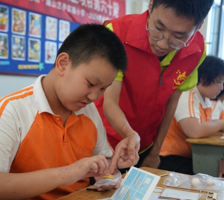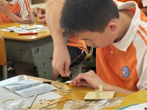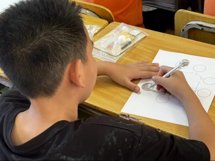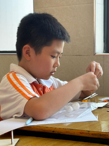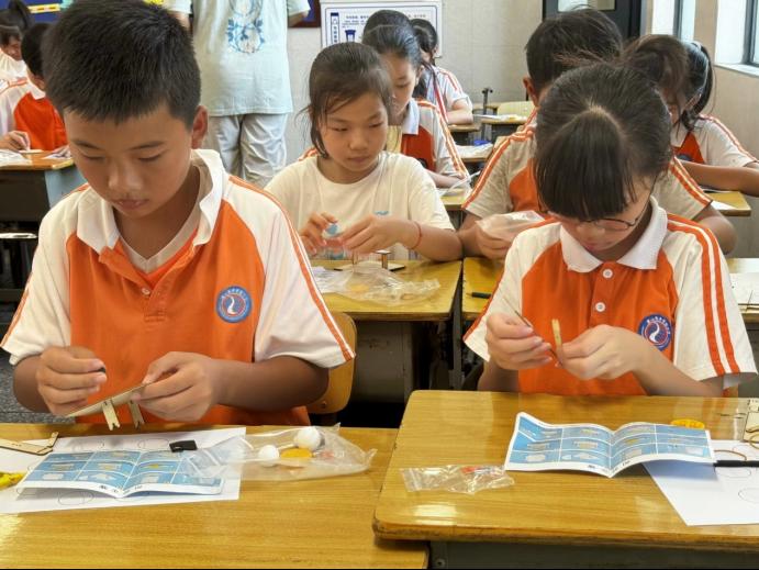 紧接着,就到了小朋友们最爱的实验环节。小朋友们打开手上日地月三球仪模型,纷纷开始了组装。每个同学都在探索与讨论中,搭建起了属于自己的三球仪模型。在志愿者的解说与帮助下,同学们也体验了亲手制作物理模型的乐趣。这个过程不仅锻炼了他们的动手能力,还让他们更深入地了解了地球、太阳和月球之间的关系。