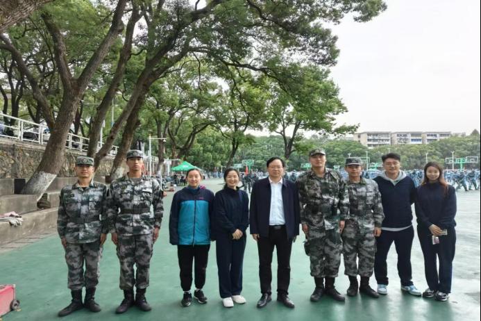 10月21日下午,公司党委书记肖来荣、党委副书记李玲芝、副经理孙小燕以及学工办副主任麻朋威一行前往南校区操场看望慰问新生,并向带训教官致以诚挚问候。