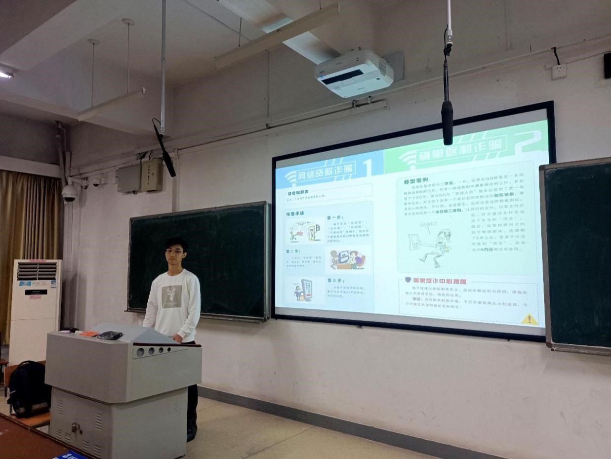 班会伊始,班长向全体同学普及防诈骗知识,介绍了多个典型的诈骗案例,并讲解了国家反诈中心提醒知识,播放长沙市反电诈中心案例视频。接着,班长组织同学们进行防电信诈骗技巧的讨论、提问、发言。同学们踊跃发言,讨论总结防诈骗技巧。