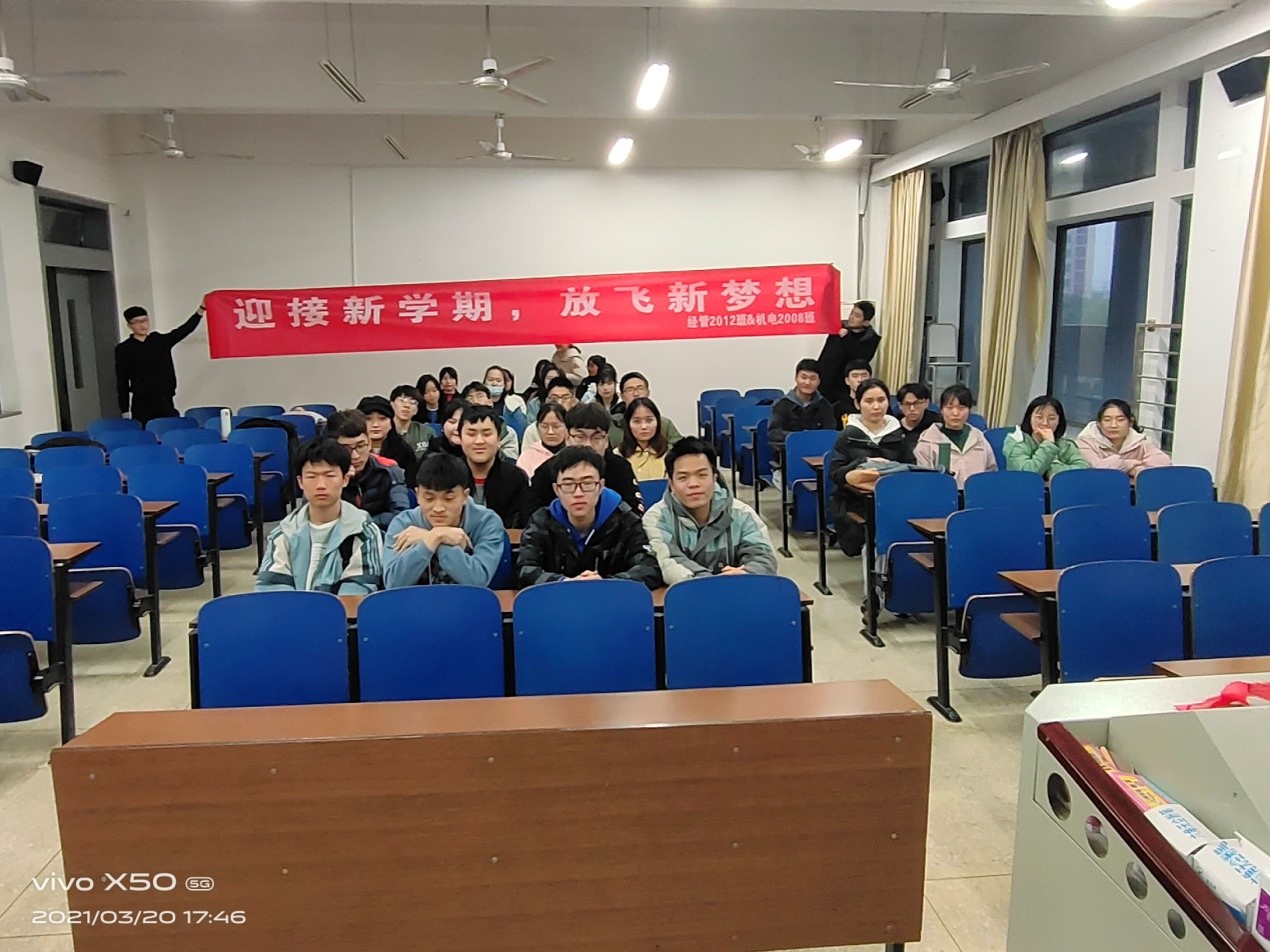3月20日下午,公司机械类2008班与经济管理公司2012班联合举办以“迎接新学期,放飞新梦想”为主题的班会活动,活动于新校区A座320教室展开,共计五十余人参加。