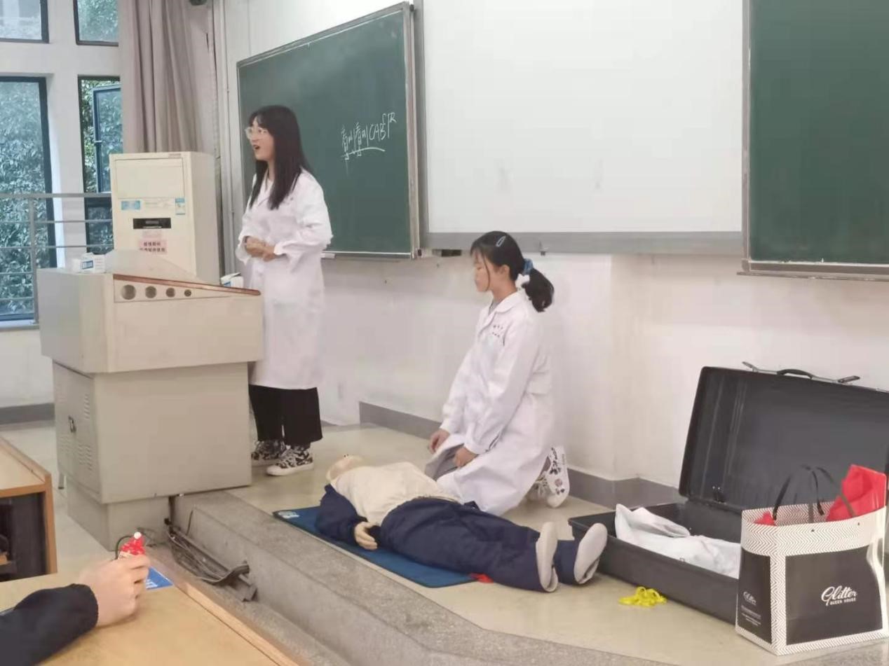 第四个部分是健康中南宣讲。活动邀请健康中南宣讲团进行健康宣讲。宣讲团讲师进行心肺复苏模拟演示以及烧伤、煤气中毒等一些常见问题的处理,同学们获益匪浅。