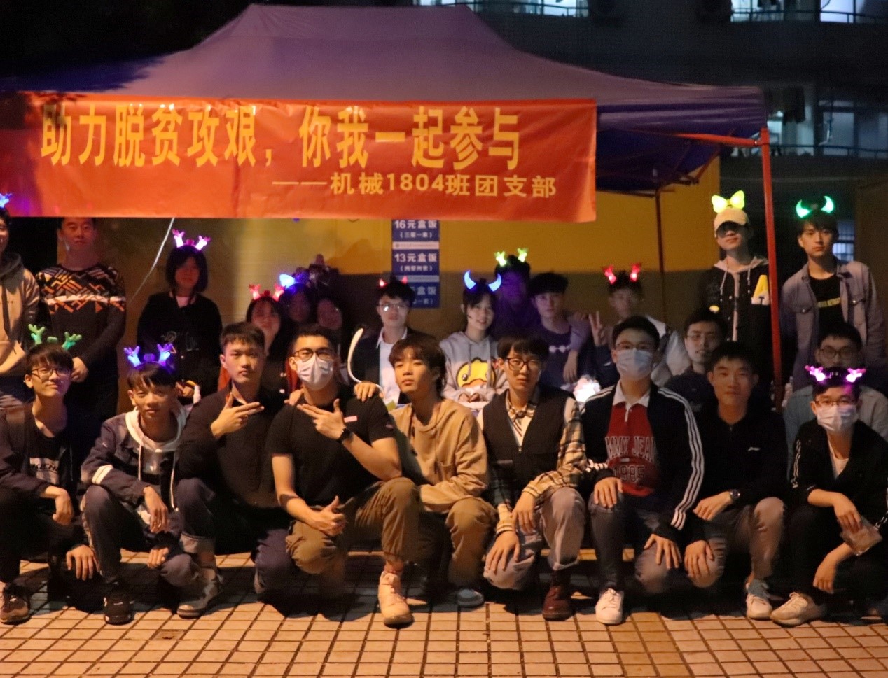 10月24日晚,公司机械1804班于南校区升华广场举行十月主题团日活动——脱贫攻坚齐助力,爱心义卖共参与,班导师黄奎和全班同学共同参与本次活动。