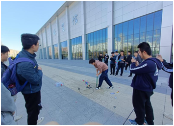 11月14日下午两至三点,同学们在体育馆侧面集合,拿取团支部准备的水火箭组装道具,四人为一组,进行简单的水火箭搭建设计,现场讨论激烈,气氛热烈。在小组汇报组装完成后,联合团支部开展了组与组之间的飞行射程比赛,并进行二级火箭的发射实验,比赛和实验进行顺利,达到预期目的,让同学们从实践方面领悟了航天航空的基础飞行装置,体悟老一辈“神州人”追梦精神。