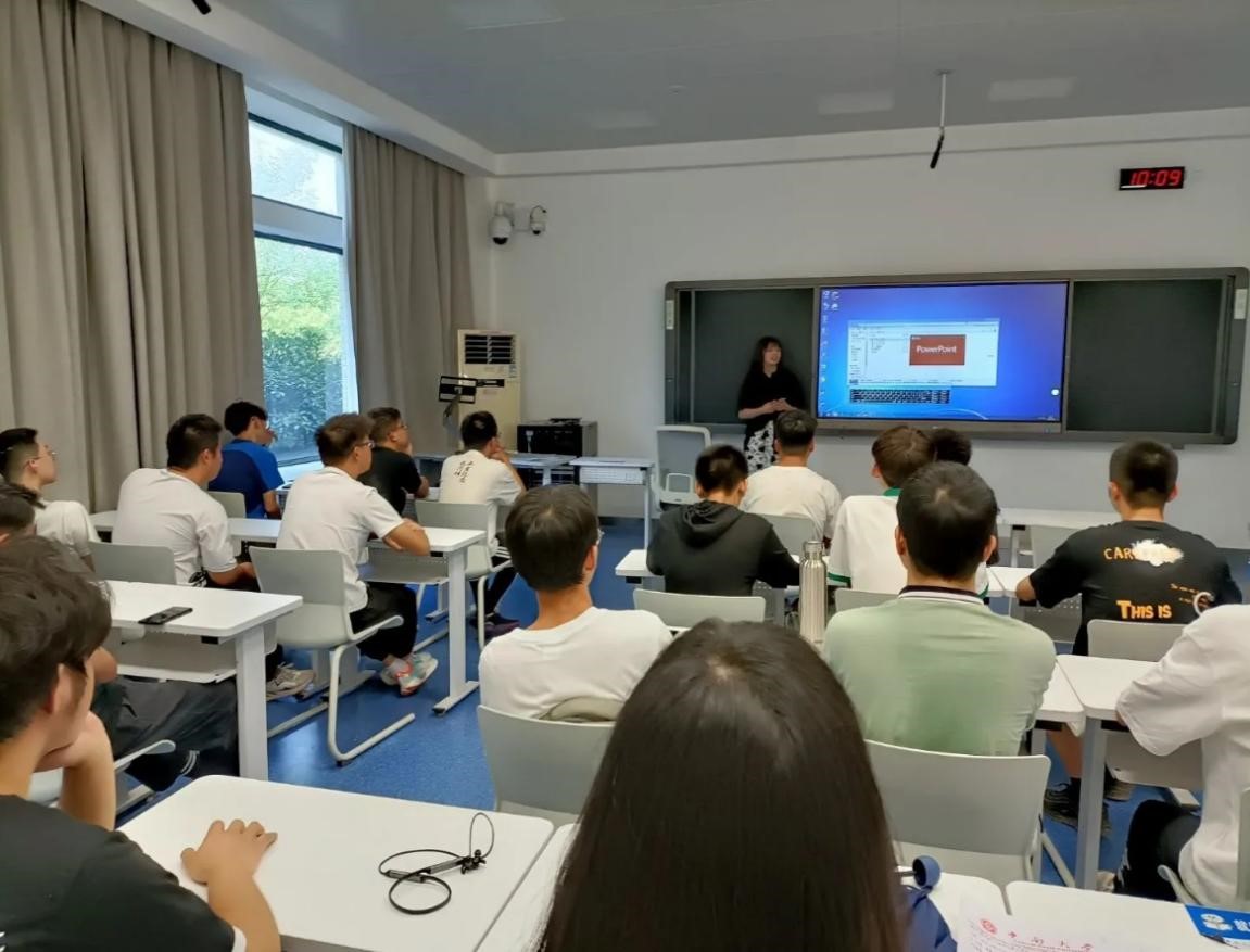 之后,副班导常容坤向大家分享了个人成长经验。作为同学们的学姐,常容坤向大家介绍了近年来公司毕业生的就业去向,近年保研政策、保研比例、考研、考公、选调等情况,以及竞赛相关内容,引导新生做好老员工涯规划。