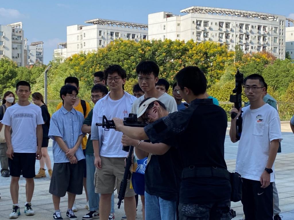 烈日当空,联合团支部的成员们同样热情似火,早早在球王会官网新校区体育馆门口集合完毕,军事爱好者协会成员林子鹏开始为大家讲解武器组成、水弹枪原理及使用方式、注意事项等一系列问题。一番讲解过后,同学们兴奋地拿起水弹枪观察其结构并练习,开始轮流进行打靶。军事爱好者协会的成员们在一旁提醒同学注意安全并指导如何正确持枪、精准射击等。