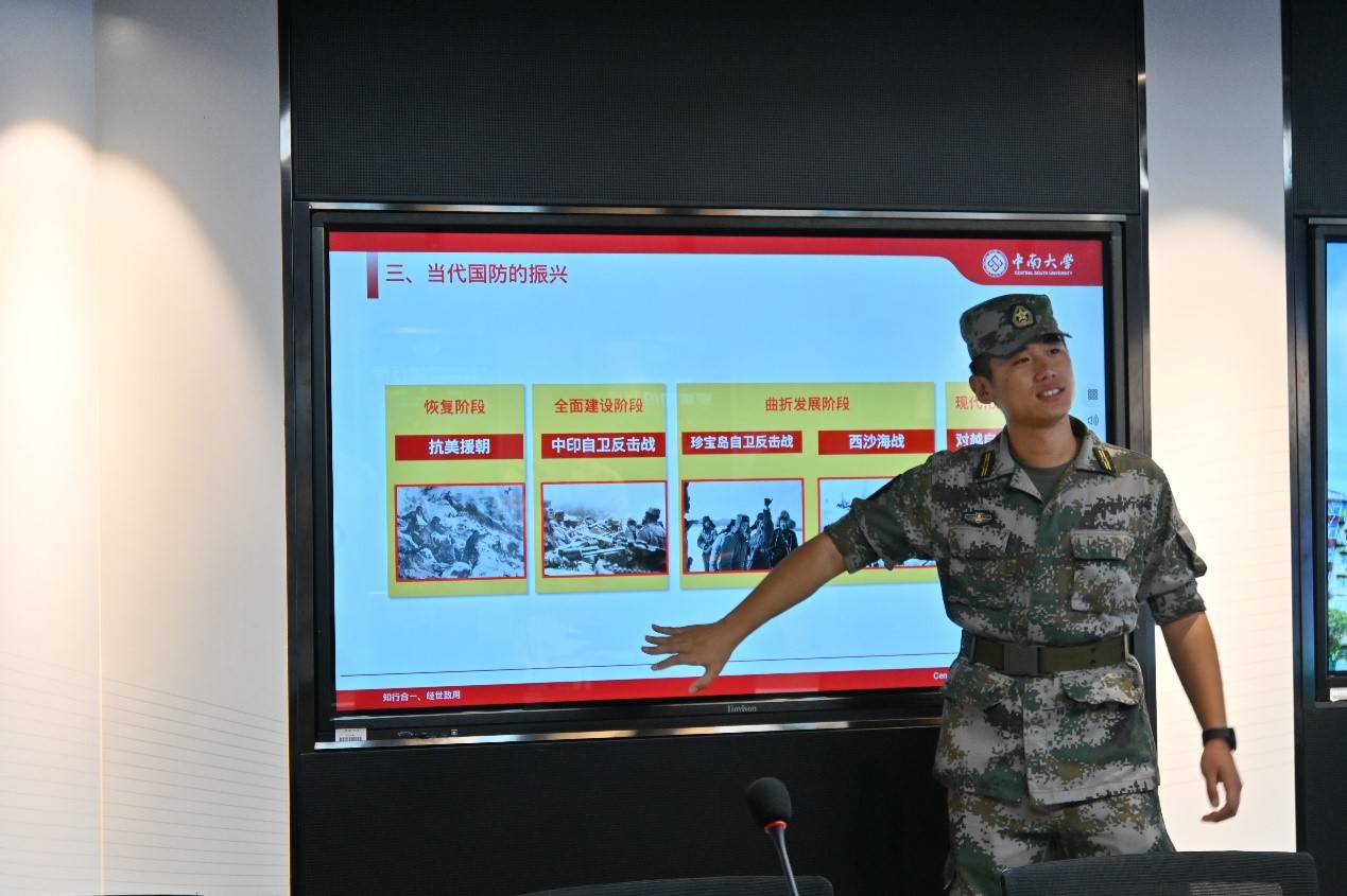 室外活动结束后,团支部成员来到球王会官网毓秀楼国防教育中心,退伍军人作为讲解员为我们介绍了我国国防发展史和球王会官网优秀国防生的突出事迹等,带我们重温国防的建设之路。