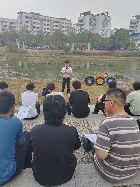 11月12日下午,我院机械类2207、2208、2209班在问渠水榭联合组织了“与先秦诸子对话,启文化自信哲思”经典诵读活动。诵读内容为道家经典《道德经》。本次活动由机械类2208班班长韩雨博同学作为讲解员,机械类2022级辅导员黄奎作为指导老师参加活动。