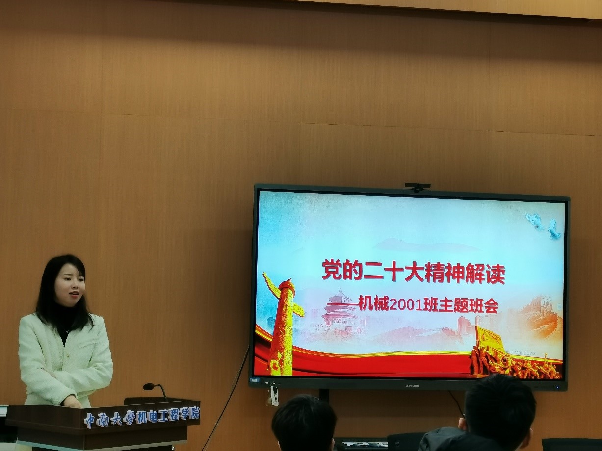 2月28日下午,公司机械2001班在机电楼C202会议室举办“青春践行二十大”主题班团活动,学习了党的二十大精神、总结了上学期班级建设情况、规划了新学期班级工作、开展了班级同学发展规划指导。班导师张悦及班级全体同学参加。班长逯瀚元主持活动。