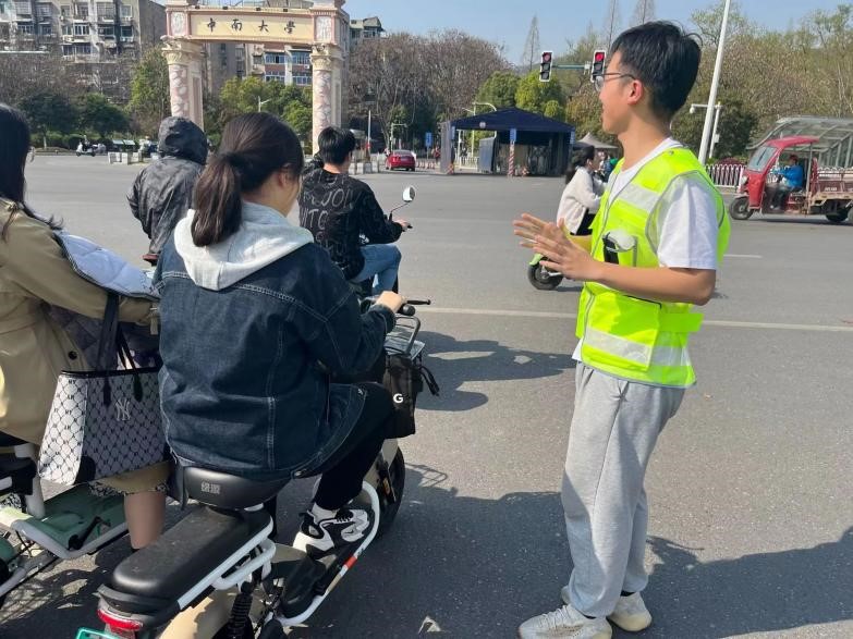 交通文明劝导小组的同学们充当了一次“小交警”。大家主要对骑电动车时不戴头盔以及骑车载人等现象进行了劝导和监督。在志愿活动中,同学们切身体会到了交警工作的不易,也看到了违规行为的危险性。
