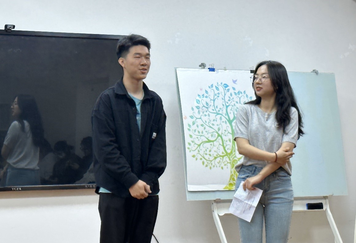 5月22日上午,活动负责人邀请了毓秀楼心理健康辅导中心李静茹老师为同学们开展了讲座和团辅相结合的活动。首先,大家在问渠长廊进行了简单讲解以及暖场心理小游戏,让同学们相互了解、相互熟悉,并初步对此次的活动有了一定的了解。来自不同班级的同学在游戏中逐渐熟络起来,活动氛围其乐融融。