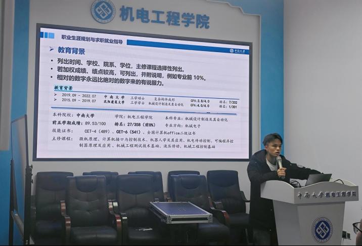 机械硕士2405班邹晨晖同学以“复试笔试以及简历撰写”为主题,深入剖析复试笔试备考方法。同时,他结合本科的荣誉奖项和科研经历,分享简历内容提炼技巧。